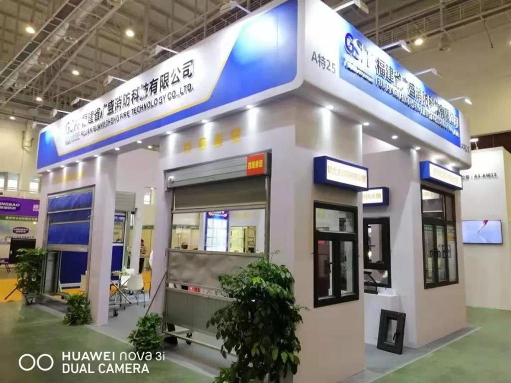 此次展会中,广盛展区规模为54平方米,展厅顶座以大气蓝色为主,点缀少许黄色,整体空间则是以白色为主色调,美观大气。展馆内分区域展出广盛经典产品防火卷帘和挡烟垂壁及广盛新品——各类钢质非隔热防火窗、铝合金非隔热防火窗、断桥铝非隔热防火窗等,整洁有序的空间视觉设计,科学合理的空间布局,给前来观展的观众舒适自然、精致美观的感受,充分凸显出广盛品牌的不一样!
