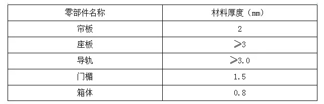 3.1帘板、导轨、门楣、卷轴等部位的表面不允许有裂纹、压坑及较明显的凹凸、锤痕、毛刺、空洞等缺陷。